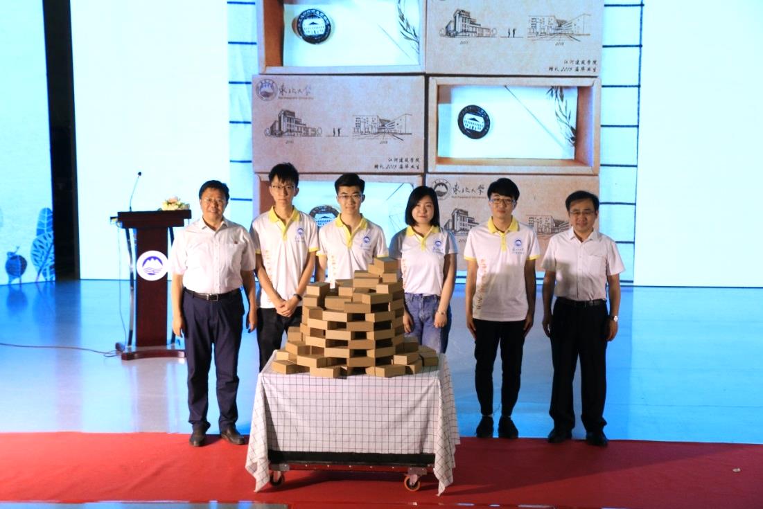 在第二篇章“铭师恩”环节,毕业生为班导师陈沈、付艳华、孙贺、王大鹏和“最受欢迎的外请教师”彭丰年、夏永发、曹洪滔献上鲜花,向到场的全体老师行谢师礼。恰逢91暗网 建院五年周年之际,毕业生还向91暗网 献上了由他们自己设计和制作的《我们的五年》毕业展,校党委副书记张国臣和院长修春亮共同为贺礼揭幕。