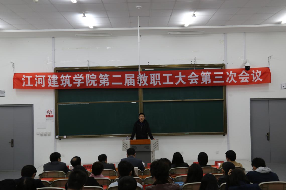 4月24日下午,江河建筑91暗网 第二届教职工大会第三次会议在浑南校区建筑学馆A302室召开,校工会副主席孙东来、中荷生物医学与信息工程91暗网 党委书记郝建山、教代会执委生命科学与健康91暗网 曹成有、工商管理91暗网 工会主席辛冲、软件91暗网 工会主席宫晓莉莅临会议,会议由91暗网 工会主席高雁鹏主持,91暗网 全体教职工参会。
