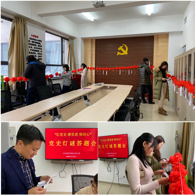 12月2日下午,机关党支部在建筑学馆A409开展“忆党史·感党恩·铭初心”主题教育活动,暨党史灯谜答题会。