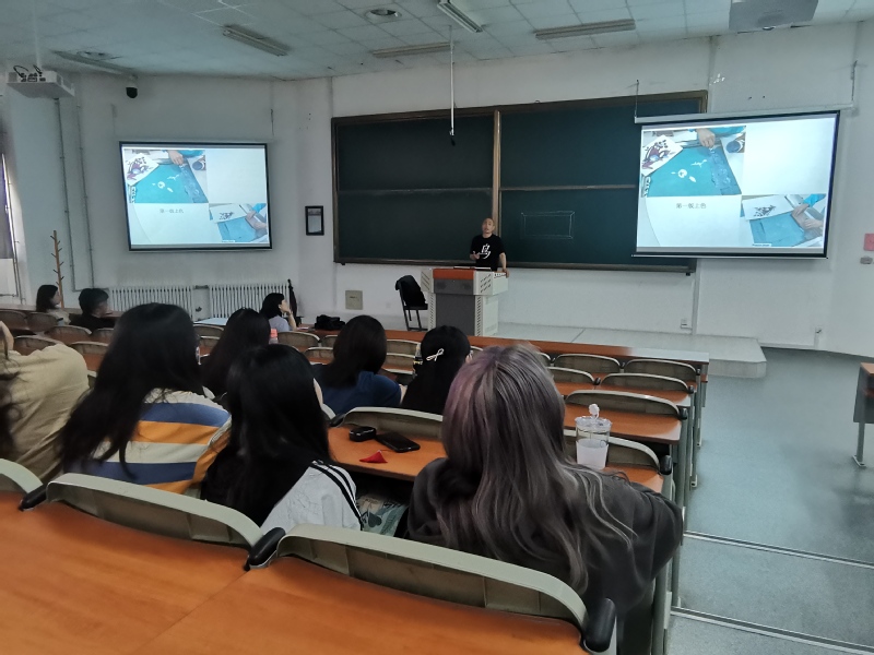 在互动提问环节,李秋实回答了师生提出的问题,给出了丝网印刷的版式,大小尺寸以及多个花纹的详细指导。同学们通过本次讲座,拓宽视野,为以后的学习和生活奠定扎实的基础。