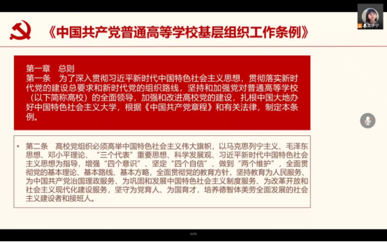 此次组织生活会上,各党支部就《中国共产党普通高等学校基层组织工作条例》《中共中央关于党的百年奋斗重大成就和历史经验的决议》和学习贯彻党的十九届六中全会精神等专题开展集中学习研讨,充分践行把学习习近平总书记重要指示批示精神作为党支部会议的“第一议题”。