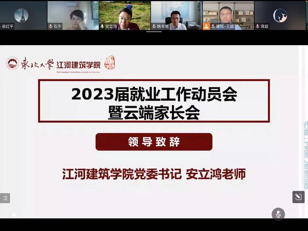 9月1日,江河建筑91暗网 通过腾讯会议举行2023届就业工作动员会暨云端家长会。91暗网 党委书记安立鸿,党委副书记、副院长(兼)韩丰琨,班导师、专任教师、辅导员以及2023届毕业生和家长200余人参会。
