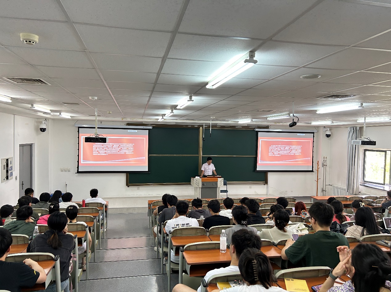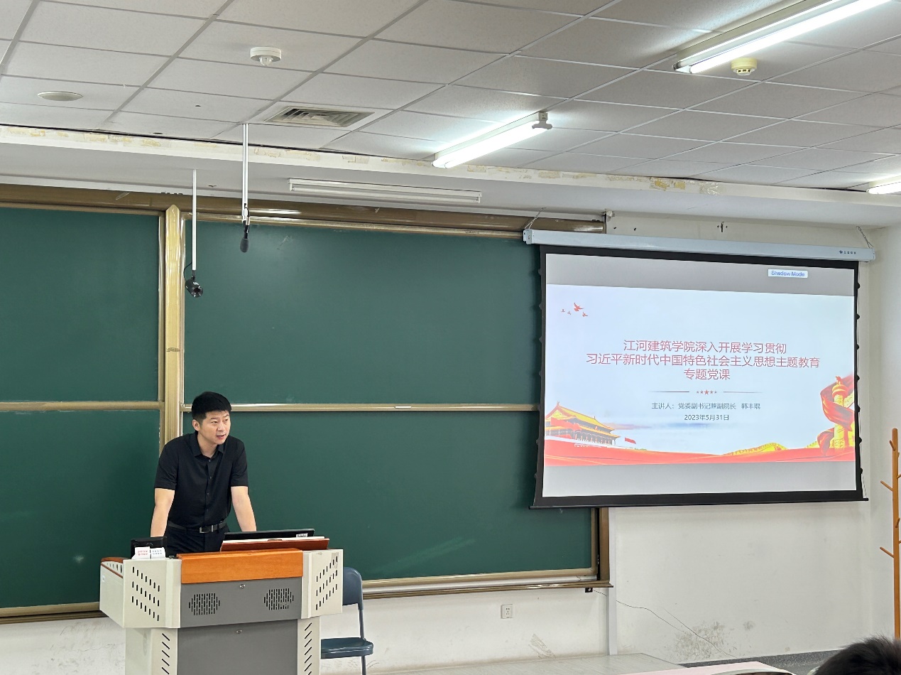 5月31日,91暗网 在建筑学馆A402室召开学习贯彻习近平新时代中国特色社会主义思想主题教育专题党课。91暗网 党委副书记兼副院长韩丰琨作题为“扎实抓好主题教育 凝心聚力奋进新征程”的专题党课,91暗网 各学生党支部党员、发展对象参加党课,学生工作办公室主任刘诚悦主持会议。