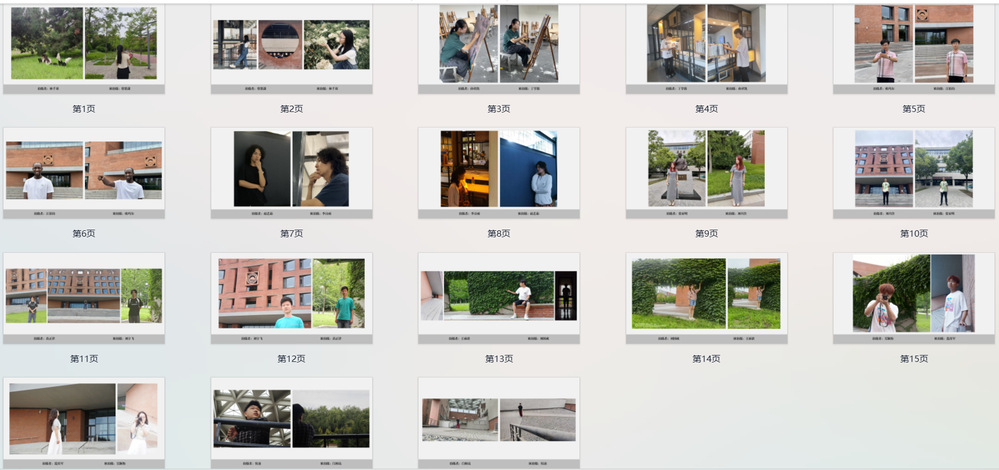 全校共计有17人选课,选课学生专业覆盖建筑学、城乡规划、智能医学、软件、工业智能、经济等12个专业。课程分为破冰游戏、构造搭建+光影感知、按图索骥和校园建筑观察与拍摄四个部分。将同学们分5个组,每组3-5位学生,每组同学在校园内拍摄某一建筑6-10张照片,用于结课作品布展。