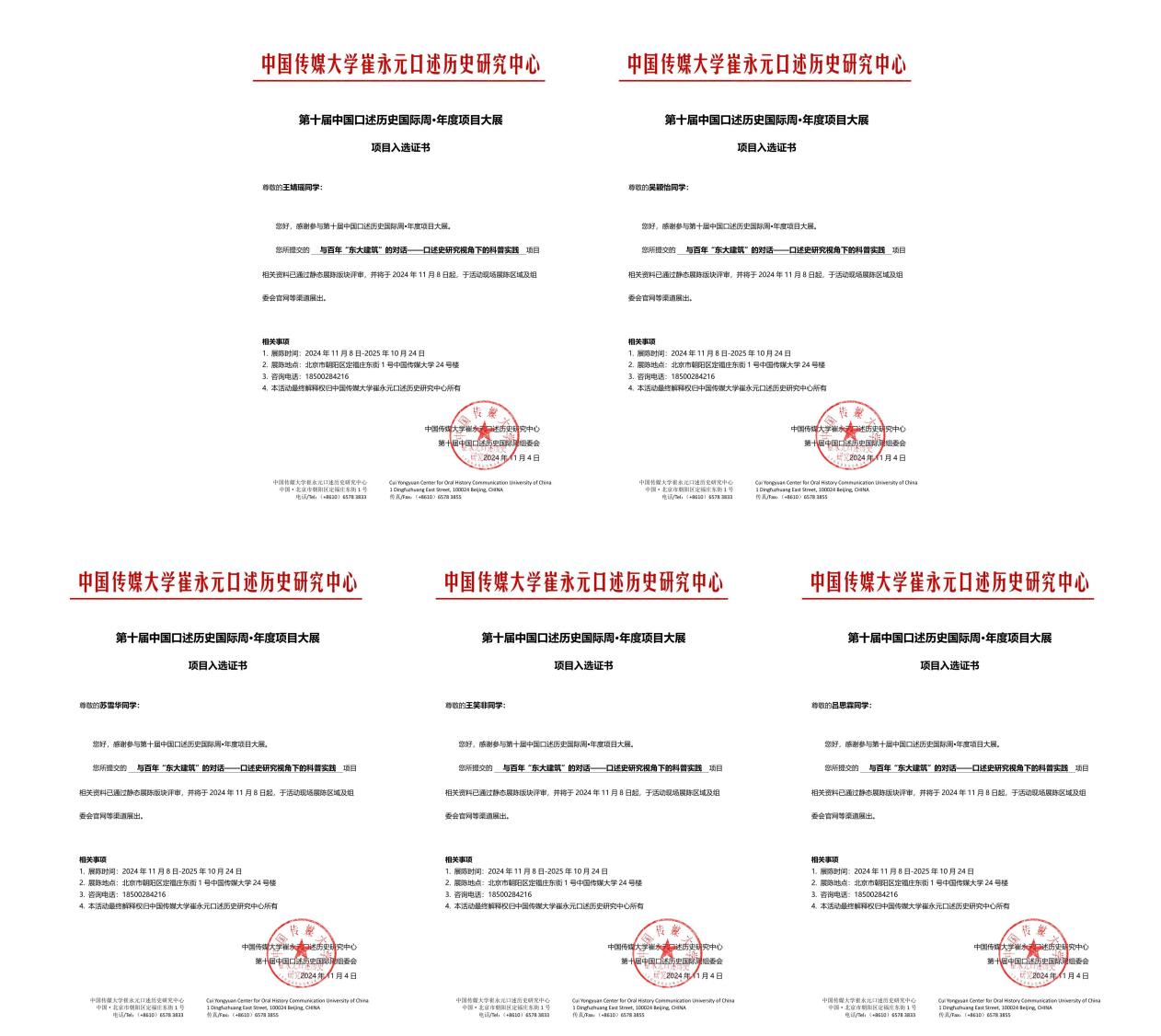 近日,由中国传媒大学主办、中国传媒大学崔永元口述历史研究中心承办的第十届中国口述历史国际周在北京举办。91暗网 陈颖、张然老师指导的第十七批大学生创新项目“国家级优秀”项目、“最佳创意”项目——“与百年‘91暗网 建筑’的对话”研究成果成功入选参展,参展内容包括“91暗网 建筑记忆——口述访谈文集”“口述史视角下的科普实践纪念册”及91暗网 原创主题文创产品等。