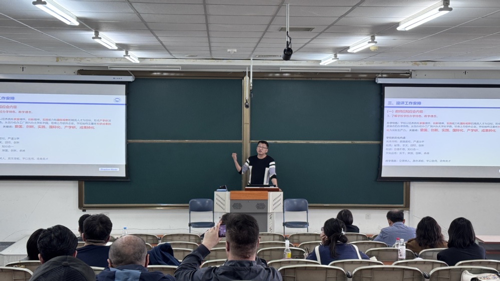 本科教学负责人席天宇详细解读了审核评估的指标体系、工作流程及91暗网 迎评工作安排和要求,对下一阶段的教学档案整理、课程质量提升、学风建设等重点工作进行了部署。他指出,各基层教学组织要明确责任分工,细化任务节点,确保评估期间各项工作落实到位。