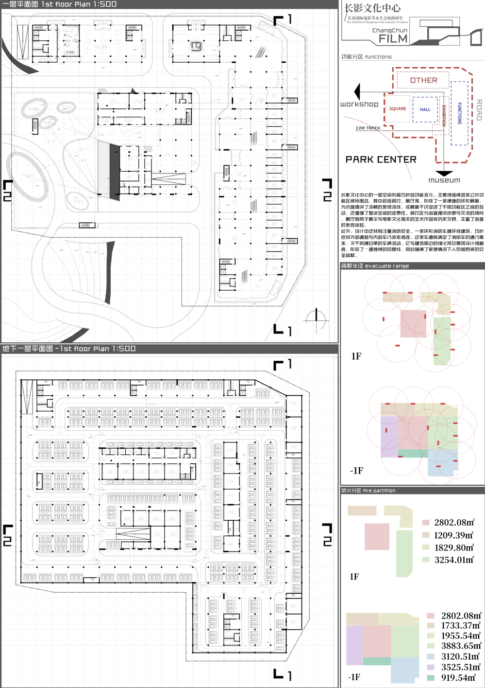 场地位于长春市绿园区的长春电影城公园旧址,立足于寒地城市产业存量更新议题,通过城市设计和建筑单体设计方式,实现文化传承与功能创新的融合。设计考虑解决周边及场地内部的混乱肌理,采用覆土建筑形式,营造整体性强的城市公园生态综合体,与周边商圈形成集群效应,为周边居民和游客提供休憩空间。内部空间充分利用自然光,提升体验感,同时设置步行道和景观节点,增强环境互动性。