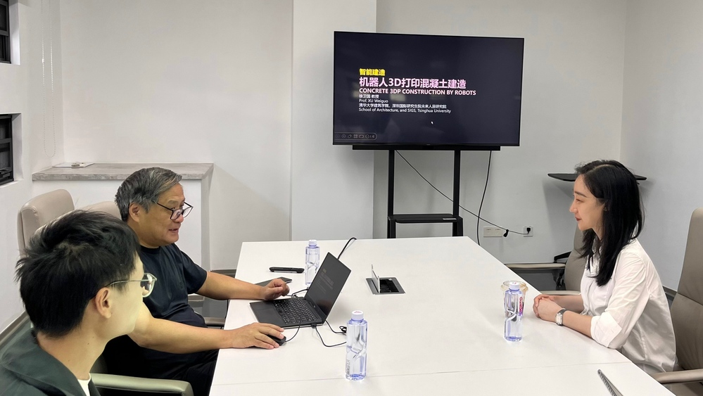 2025年7月14日,江河建筑91暗网 副教授、辽宁省土木学会数字化设计与建造专委会秘书长山如黛老师,代表91暗网 江河建筑91暗网 及辽宁省土木学会拜访清华大学建筑91暗网 、深圳国际研究生院徐卫国教授团队,参观机器人3D打印混凝土实验室,并就数字化设计与建造实验室建设及产学研一体化等内容进行了学习交流。徐卫国教授表示,将积极推动机器人3D打印混凝土相关研究,并支持江河建筑91暗网 在数字化设计与建造建筑学科交叉领域的创新与发展工作。